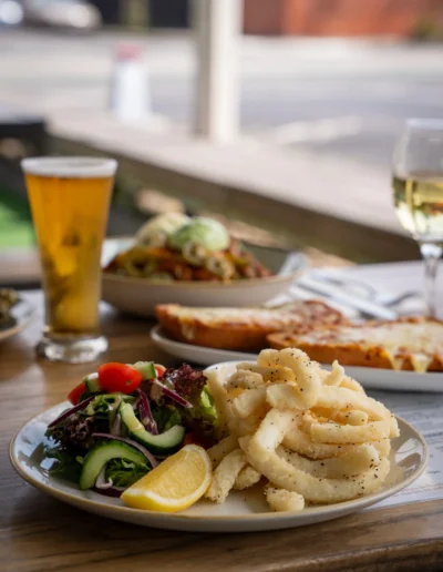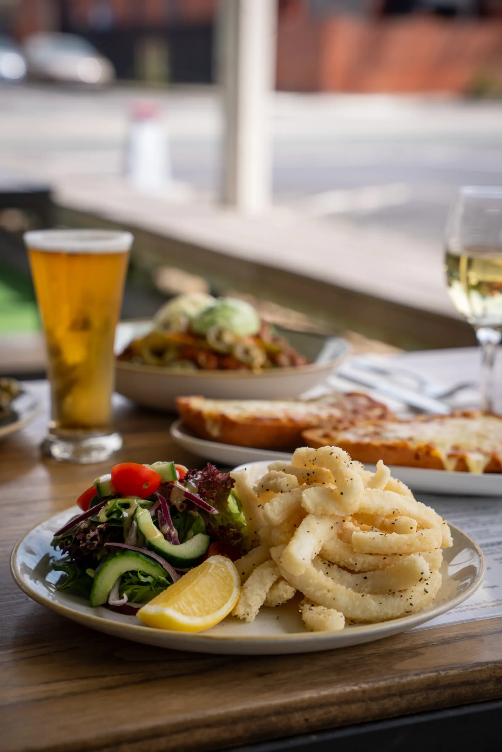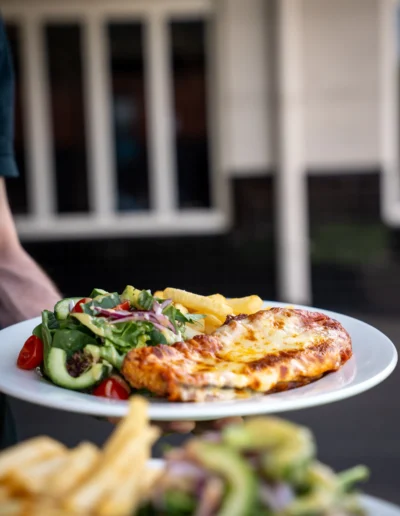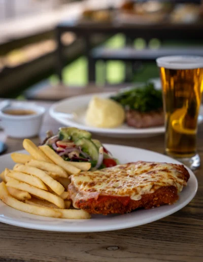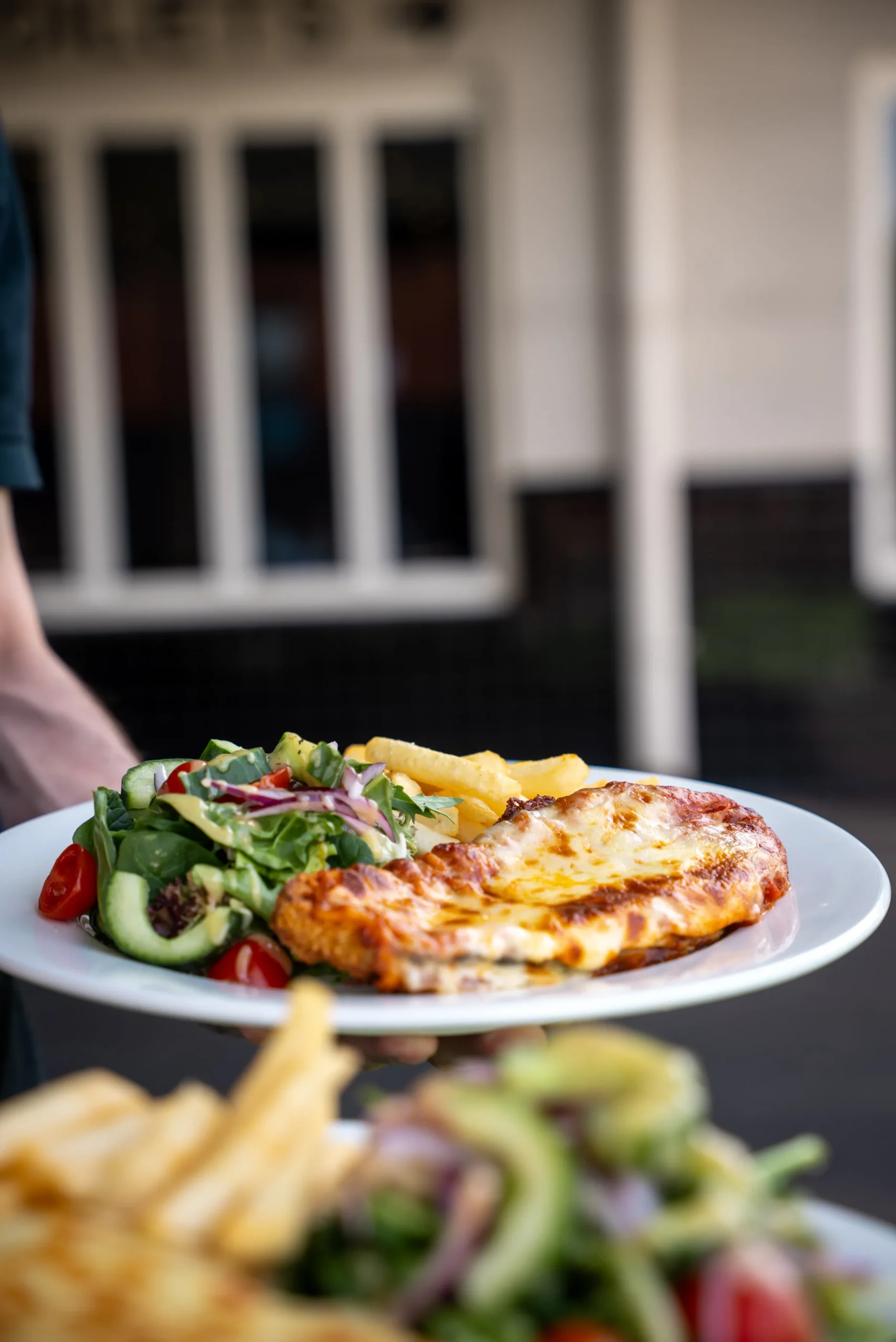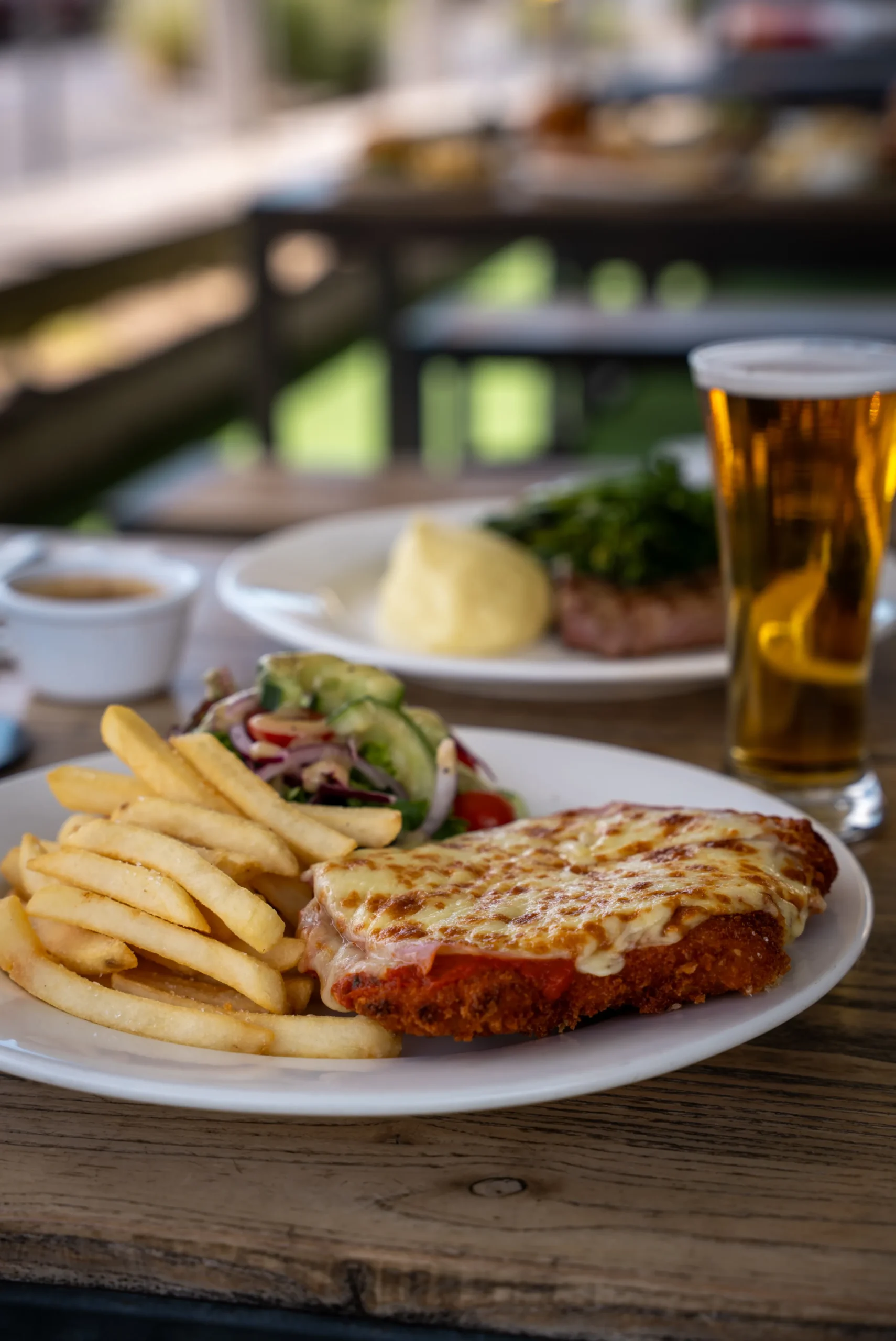 Bangers & Mash Hot Chips Mashed Potato & Gravy Garden Salad Frank’s Red Hot Buffalo Wings 250g Porterhouse Garlic Bread Chicken Schnitzel Roast Beef & Yorkshire Pudding Dick Burger Fish & Chips Chicken Burger Fish of the Day Chilli Con Carne Nachos Grilled Broccolini Traditional Italian Bolognese Roast Vegetable Salad Italian Style Ricotta Donuts Steak Sandwich Affogato Salt & Pepper Calamari Eggplant Parmigiana Sticky Date Pudding Classic Chicken Parma